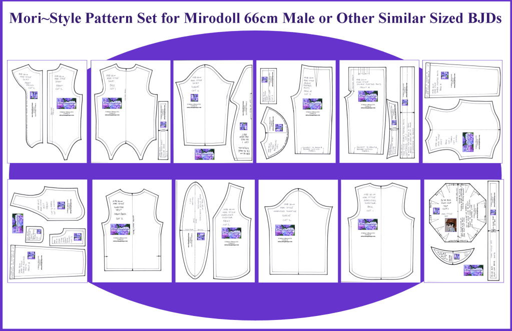 Hello, Internet~Land, and Happy New Year! I’m kinda sneaking this gift in as #8 because where I am, it is still December 31. I have a few more hours before the new year arrives. Our last Christmas surprise is a third scale (SD) Mori Style Pattern Set for the fellas! I made the set for the gals quite a while ago, and as I was deciding what I wanted to do for the new SD size Chocolate, I thought a complimentary male set would be a fun project. This collection has seven different pieces, so be ready for a LOT of sewing! I will also have videos coming to show drawing out the pattern, sewing the hat, choosing fabrics, and putting together the pieces, so be ready for more fun to come. Here’s wishing you the very, very best for 2022!