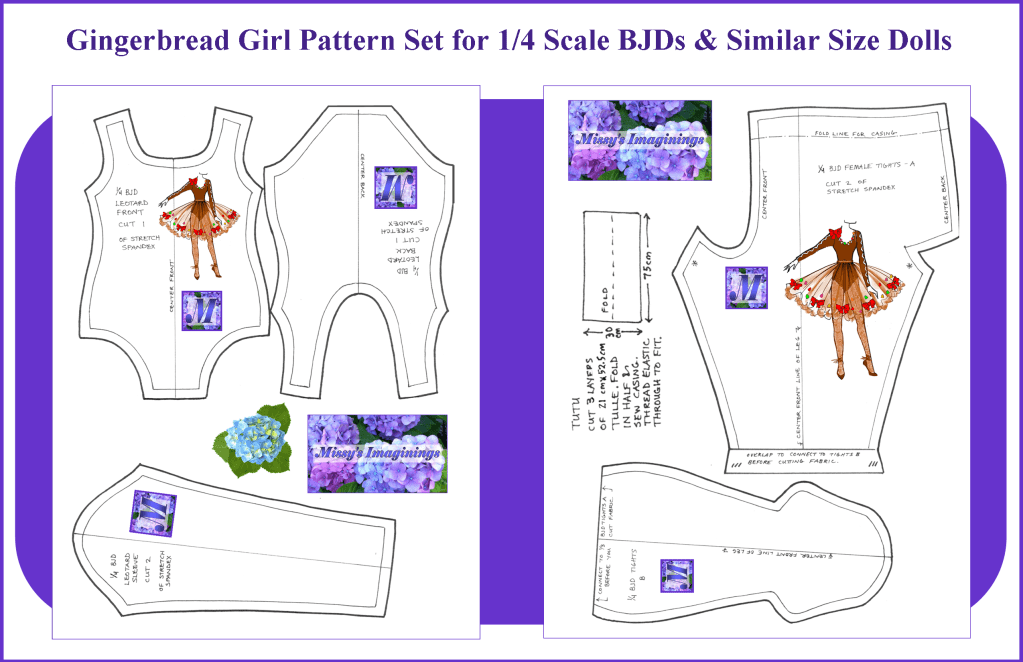 Hello, hello, and Happy December! Boy, this year the holidays came very quickly, and I wasn’t quite prepared! Please be patient as I work to get all twelve gifts ready to post here on the site. I have the design sketches done and am very excited about this collection. The first is the Gingerbread Girl design for third scale BJDs. The pattern for the leotard was a request from someone in our community, and I thought it would be really fun to incorporate it into our holiday set. So, without further ado, allow me to present the first pattern gift of 2024!