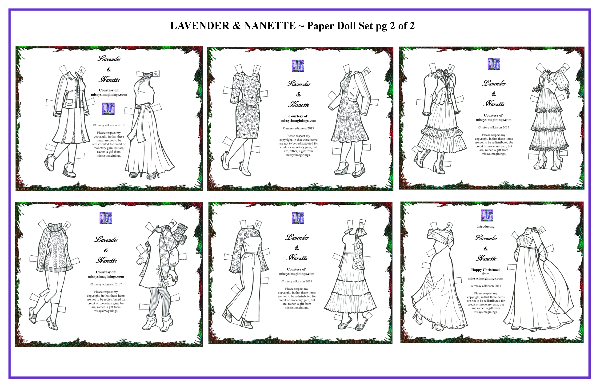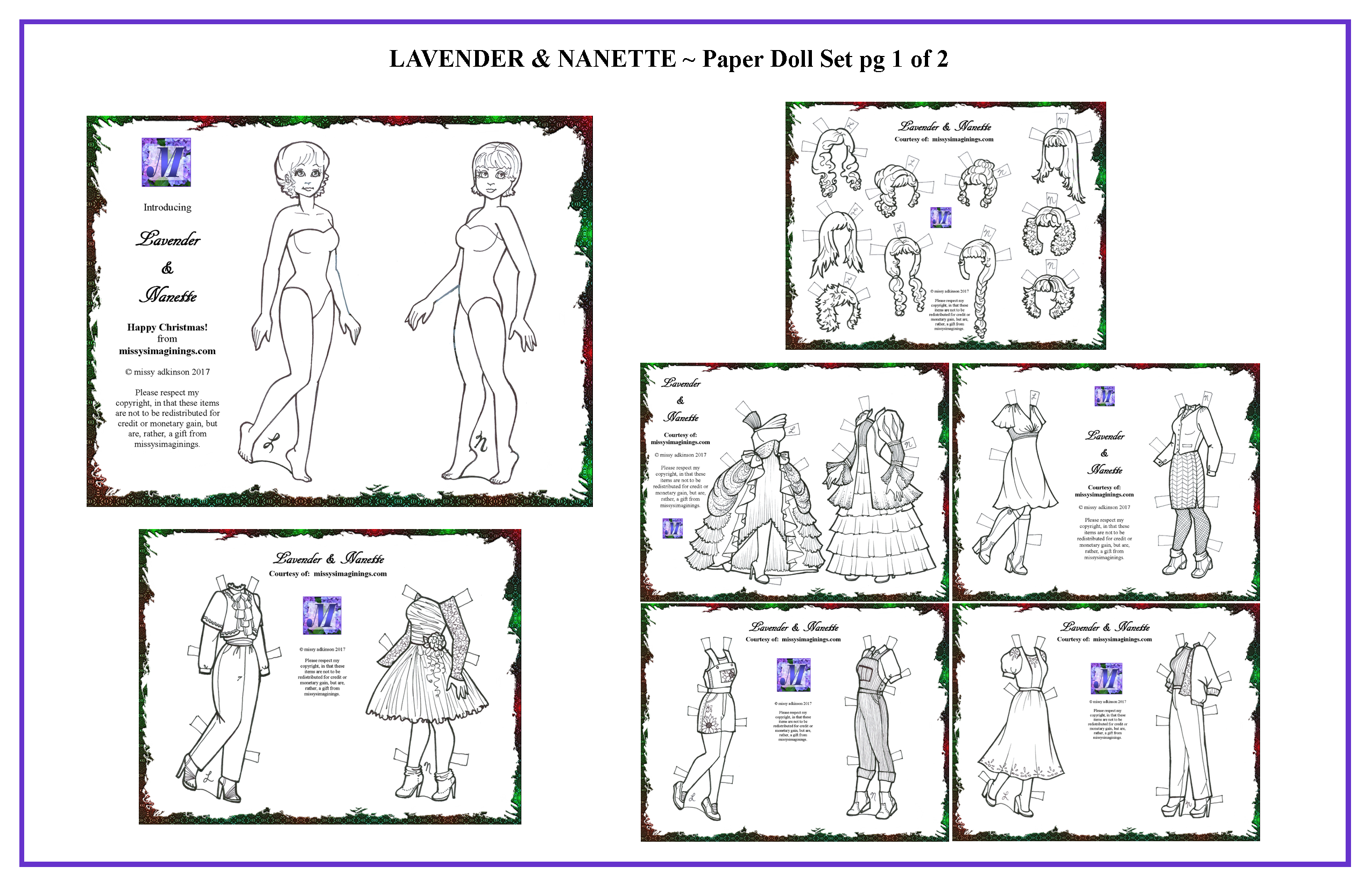 This page features my Paper Doll Collections. These images show the dolls and included fashions for each file. The free PDF link for the set is below the image/s. Each file is constantly updated as I add new designs, making sure all the fashions for each set are included in one simple download. Enjoy!